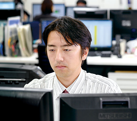 現在は、新たなシステム構築の仕事から、海外グループ会社のシステムの管理、社員のパソコンや周辺機器に関する対応など、幅広い業務に同時に携わっています。システムは、仕事をより良くするための有効な手段。自分の技術と工夫次第で、社内の業務が効率的になっていくのを見ると、とてもうれしく、やりがいを感じます。また、過去に自分がつくったシステムを数年後にもう一度見直すと、改善点が幾つも見えてきて「もっと良くしたい」という気持ちに自然となれるのも、面白いなと思います。